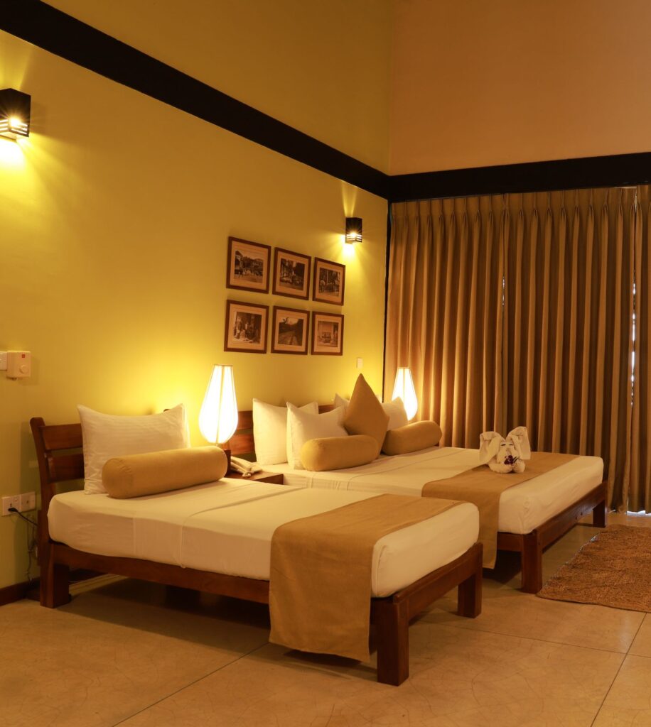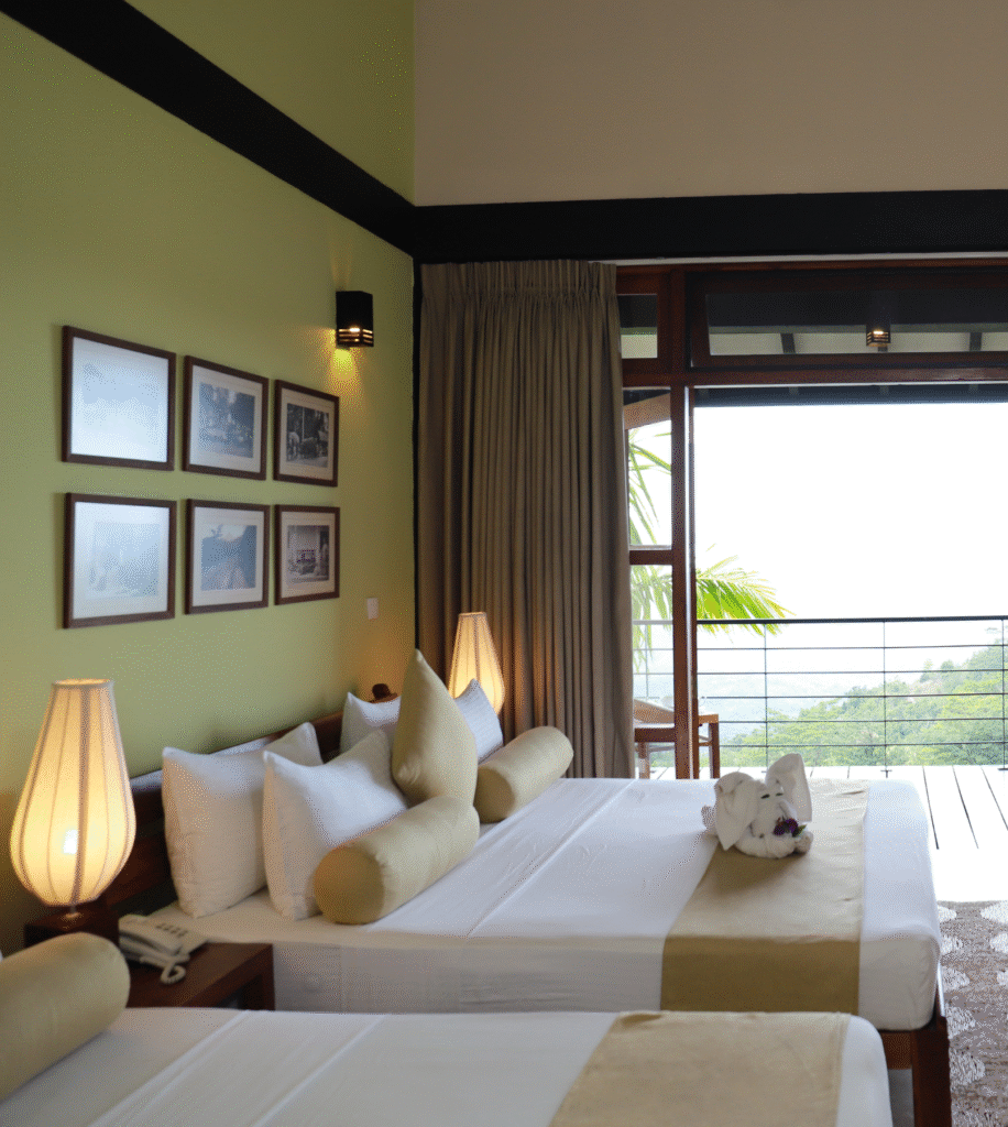 Blue skies greet our guests as they step out onto their private balconies. Our deluxe rooms are a home away from home and will be an oasis of rest to our guests after a day of exploring nature. The rooms have been carefully designed so that our guests feel comfortable on every level, whether physically as they sink into their cozy beds or mentally as they take in the unifying colors and uniquely Sri Lankan artworks.