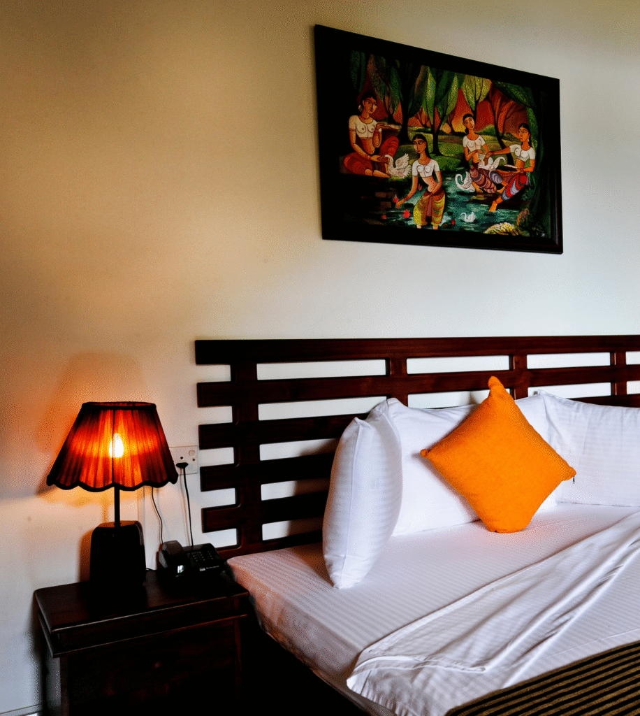 The Deluxe Room at Melheim Kandy Villas offers a cozy and elegant escape in the hills of Kandy. Designed with comfort in mind, each room features a plush bed, private balcony with scenic views, air conditioning, satellite TV, minibar, free Wi-Fi, and a modern bathroom. It’s perfect for a peaceful getaway surrounded by nature.